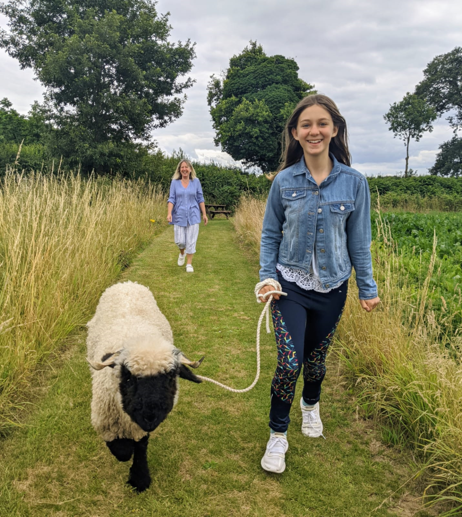 Children who are the same height as my sheep and are exciteable, prone to trantrums and unpredicable are not suitable for walking with large sheep with very sharp horns. So, I decided to specify that the sheep are big, strong and have horns and children must be over the age of 10 . Half hoping no-one would take up on my offer only a week later I got a text asking if someone could walk with my sheep, aaargh!